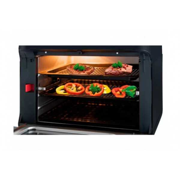 Аксессуары: вращающаяся корзина для жарки, вертел для приготовления курицы-гриль, 2 решетки для приготовления разных блюд, противень для выпечки/поддон для сбора жира