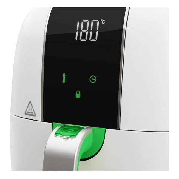 Моя 3-литровая жарочная тарелка может вместить до 350 граммов пищи. Я могу приготовить вкусные блюда, такие как хрустящий картофель фри, домашний картофель, котлеты, овощи, мясо, спринг-роллы, рыбные палочки или даже пирожные. У меня есть компактный дизайн, и место для меня можно легко найти в каждом доме.