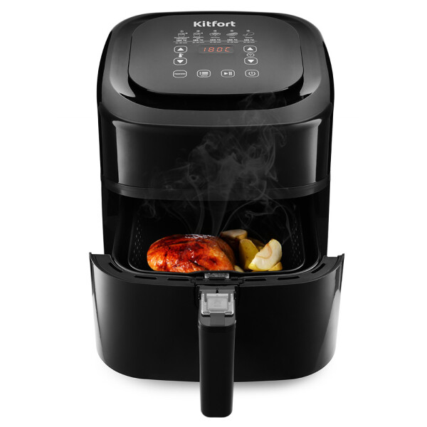 Стильный аэрогриль Kitfort КТ-2215 может использоваться как аэрогриль, а также как аэрофритюрница и духовка и позволяет готовить большинство продуктов с минимальным количеством масла или вовсе без его добавления.