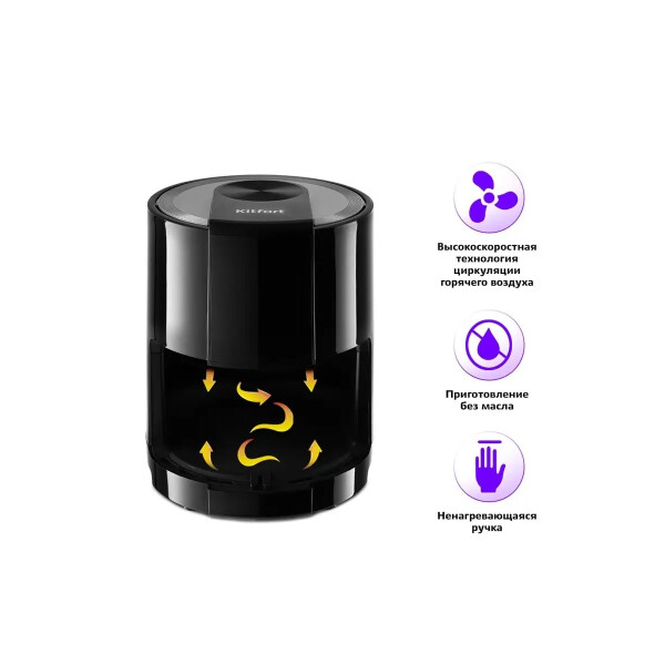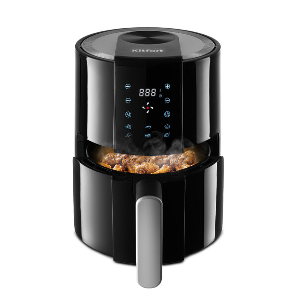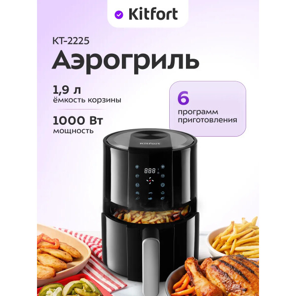 Аэрогриль Kitfort КТ-2225 может использоваться как аэрогриль, а также как аэрофритюрница и духовка и позволяет готовить большинство продуктов с минимальным количеством масла или вовсе без его добавления.