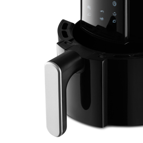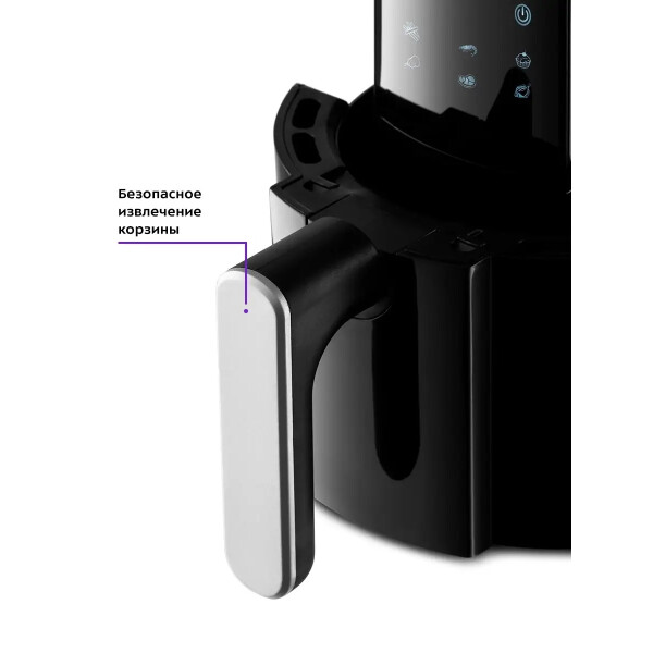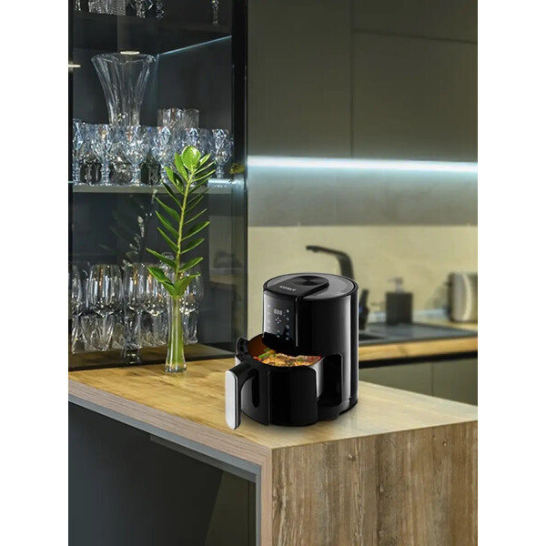 Продукты готовятся в специальной корзине, которая вставлена в поддон. Благодаря системе циркуляции горячего воздуха, продукты обжариваются равномерно со всех сторон, получаясь нежными внутри и с хрустящей корочкой снаружи.