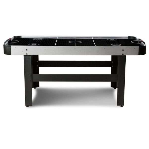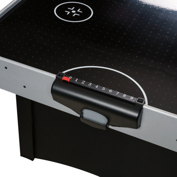 Аэрохоккей для домашнего использования PROXIMA BLACK HAWKS оснащен специальными регуляторами ножек, позволяющими изменять высоту стола. Корпус выполнен из кочественного ЛДСП, который покрыт сверху прочным пластиком.