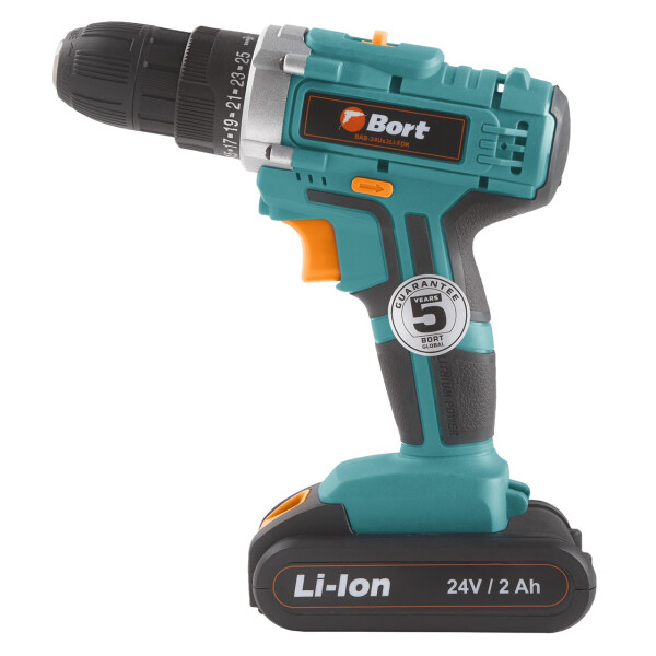 Аккумуляторная дрель-шуруповерт BAB-24UX2Li-FDK представляет собой сверхлегкий компактный беспроводной инструмент. Как и все безударные дрели, устройство гарантирует сверление с высокой точностью отверстий. Изделие станет незаменимым помощником для монтажа и демонтажа, а также во время ремонтных работ в квартире или загородном доме. Беспроигрышный вариант подарка для мужчины. Малый вес модели - 1,3 кг делает использование инструмента комфортным на протяжении длительного времени. Благодаря литий-ионовым аккумуляторам, в комплекте 2 батареи, емкостью 2Ач вы можете использовать дрель вдали от источников питания, 2-х скоростной редуктор и батарея на 24 вольта обеспечивают высокий крутящий момент 35Нм и стабильную продолжительную работу. Функция контроля максимальной скорости будет полезна при работе с разными материалами: древесиной, металлом, гипсокартоном. Регулировка крутящего момента и реверс наделяют инструмент свойствами шуруповерта. Подсветка рабочей зоны позволяет использовать дрель в условиях недостаточного освещения. Инструмент удобно ложится в руку мастера, благодаря прорезиненной рукоятке эргономичной формы. В комплект входит: быстрозарядное устройство, дополнительная аккумуляторная батарея и сумка для хранения и транспортировки. На модель предоставляется стандартная гарантия - 2 года и расширенная - 5 лет.