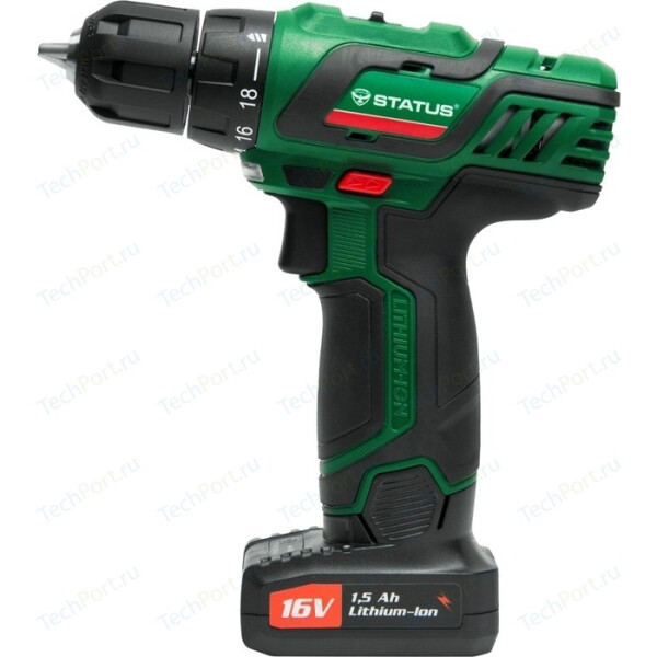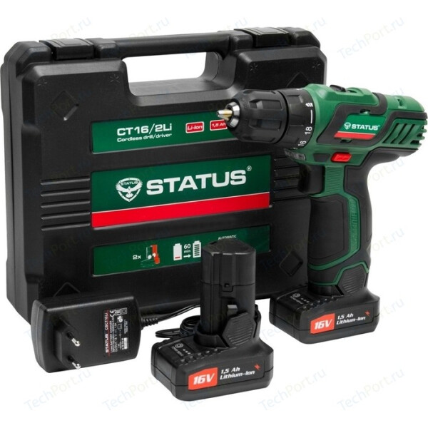 Аккумуляторная дрель-шуруповерт STATUS CT16-2Li - 14,4V (пиковое 16V), 1,5 Ач, 0-400/0-1400 об/мин, крутящий момент 32Нм, одномуфтовый быстрозажимной патрон 10мм, подсветка рабочей зоны, реверс, 18 поз.настройки момента, время зарядки - 1час. В комплекте: пластиковый чемодан,2 аккумулятора Li-Ion, зарядное устройство, набор бит и сверел.