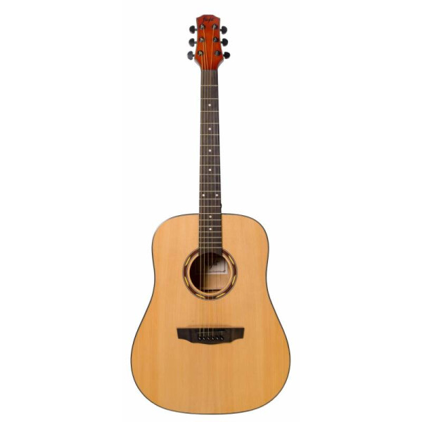 Акустическая гитара Flight D-130 NA - это гитара с объёмным корпусом, благодаря которому она имеет громкий звук, и узкий гриф, удобный для игры аккордами. Верхняя дека из ели придает инструменту яркое, звонкое, чёткое и ровное звучание. Нижняя дека и обечайка выполнены из агатиса, который обладает хорошими резонансными характеристиками. Подставка и накладка на гриф изготовлена из кабукалли. Два хромированных держателя позволят быстро и надежно закрепить ремень без использования дополнительного шнура.