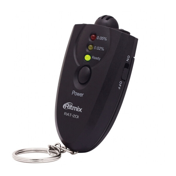 Удобный индивидуальный алкотестер RITMIX RAT-201 с полупроводниковым сенсором и питанием от двух батарей AAA поможет автолюбителям предупредить нарушение правил дорожного движения и избежать штрафов. Представленный прибор способен определить концентрацию паров спирта во выдыхаемом воздухе в диапазоне 0.00-0.1% BAC. Результат измерений отображается в течение 10 секунд с помощью светодиодных индикаторов: зеленый сигнал означает, что алкогольных частиц не обнаружено, красный — что их содержание превышает допустимые показатели, желтый — промежуточный результат. Кольцо с цепочкой позволяют подвешивать алкотестер RITMIX RAT-201 к ключам или сумке и постоянно носить с собой. Погрешность измерений прибора составляет +/- 10%.