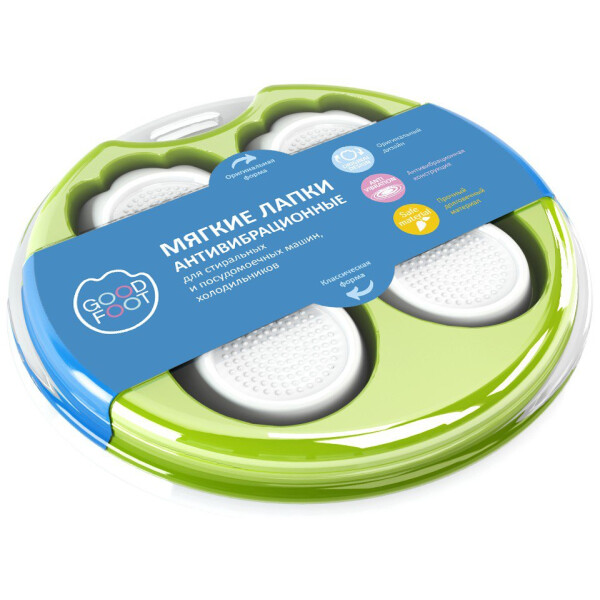 Антивибрационные подставки Holder GF-1 подойдут для использования с посудомоечными либо стиральными машинами любого типа, имеющими ножки диаметром до 45 миллиметров. Максимально допустимая нагрузка на данные виброопоры, имеющие оригинальный дизайн в виде лапок, составляет 100 килограмм.