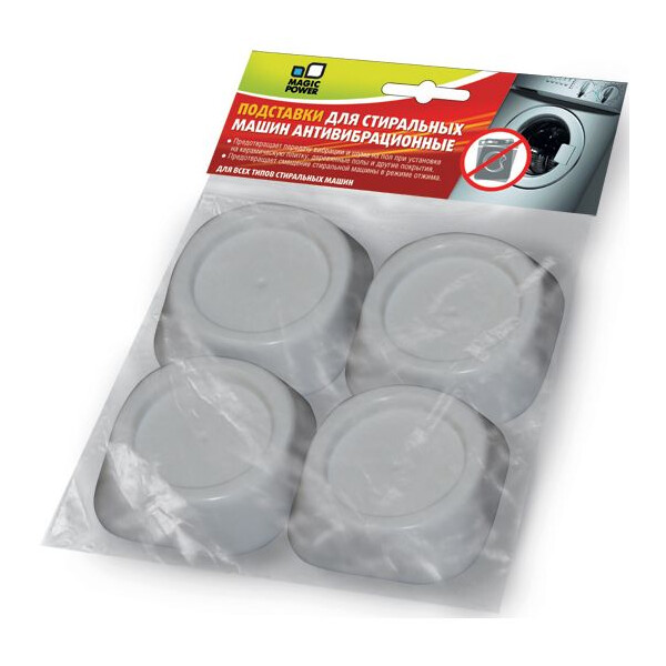 Антивибрационные подставки Magic Power MP-610 не позволят Вашей стиральной машине передвигаться по полу во время работы, что особенно часто случается во время отжима на высоких оборотах, если белье неравномерно распределилось по барабану. Помимо того, что Вам не придется каждый раз возвращать машину на место, подставки предупредят и повреждение напольного покрытия.
