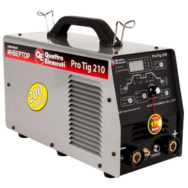 Назначение: сварочный аппарат Quattro Elementi ProTIG 210 для соединения стальных, чугунных и никелевых изделий. Позволяет произвести качественную ММА или TIG-сварку вольфрамовым электродом.