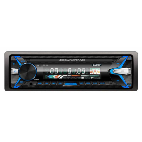 Цифровой ресивер Digma DCR-400B в черном корпусе имеет компактные размеры. Помимо этого у него множество плюсов: высокочувствительный FM-тюнер, вещающий радиостанции в диапазоне FM, что позволит слушать любимую радиостанцию в дороге и наслаждаться лаконичным звучанием. МР3-декодер, преобразовывающий цифровой сигнал в чистый звук, синяя подсветка кнопок управления. Устройство читает аудио форматы МР3. Его монохромный дисплей потребляет минимум энергии, несмотря на это, информация на нем читается превосходно. Стандартный типоразмер: 1 din, позволит самостоятельно установить его в панель любого автомобиля.