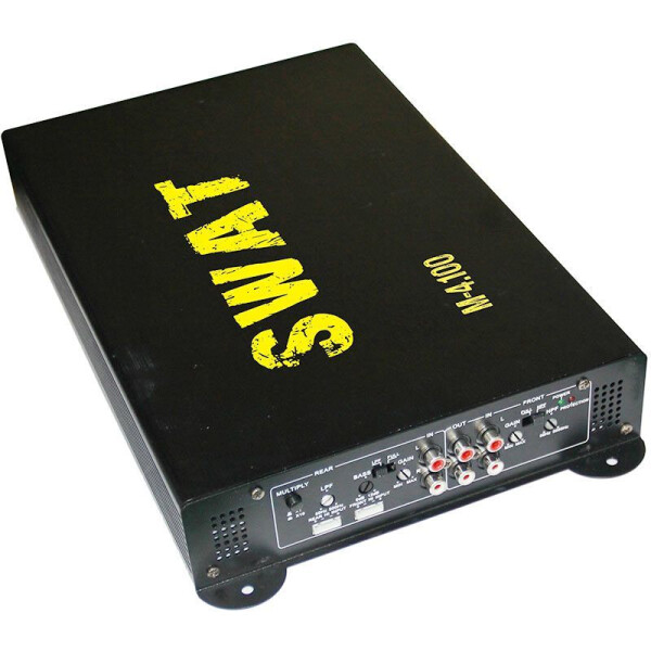 Четырехканальный усилитель Swat M-4.100 при 4 Ом выдает по 100 Вт на каждый выход, а при 2 Ом – по 135 Вт, при пиковых нагрузках мощность звука может кратковременно возрастать немногим более, чем в 2 раза. Диапазон частот (от 10 до 20000 Гц) позволяет устройству транслировать богатый, насыщенный звук. Благодаря наличию нескольких фильтров и возможности регулировки чувствительности получится настроить звук по своему вкусу.