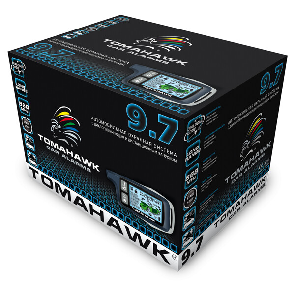 Автомобильная охранная система TOMAHAWK 9.7 с обратной связью и автоматическим запуском двигателя. Наличие функции запуска по температуре (салона или двигателя) и запуска по выбранному интервалу времени позволит более оптимально эксплуатировать автомобиль в зимнее время. Функция автозапуска адаптирована под любой тип двигателя и коробку передач, под автомобили с кнопкой «Start-Stop». Система обладает такими необходимыми функциями и возможностями, как турботаймер, встроенный иммобилайзер, встроенная блокировка стартера, охрана с заведённым двигателем, работа автозапуска без ограничения времени, отключаемый «Anti-Hijack» и др.