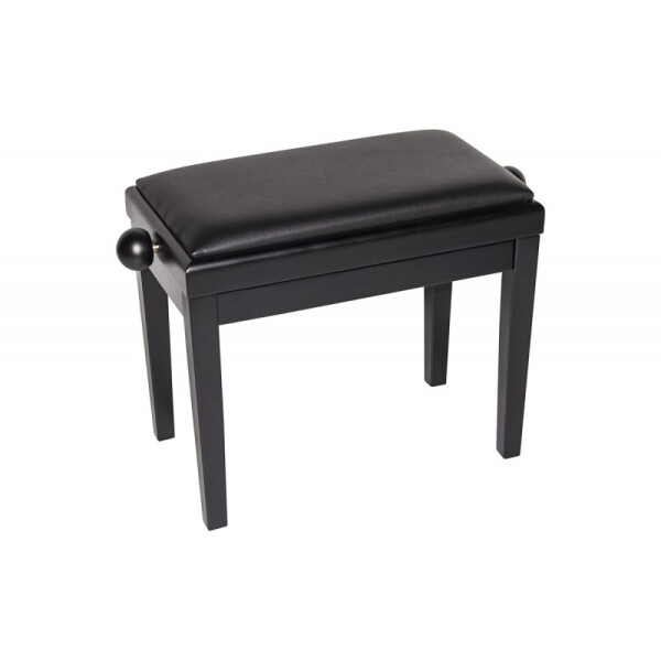 Регулируемая деревянная банкетка для занятий на фортепиано, изготовлена из дерева и металлического подъёмного механизма. Мягкое сиденье модели обито искусственной кожей высокого качества. На ножках установлены резиновые вставки, которые обеспечивают банкетке большую устойчивость и предохраняют покрытие пола от повреждений.