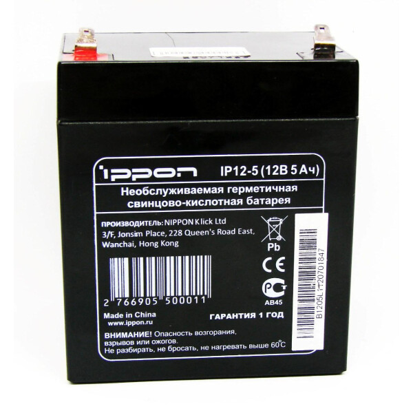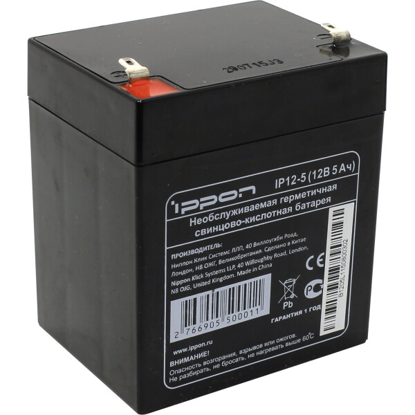 Батарея для ИБП Ippon IP12-5 разработана для применения в резервных системах энергоснабжения. Решение используется для повышения отказоустойчивости телекоммуникационного оборудования, систем безопасности и связи, автоматизированных комплексов и других важных узлов инфраструктуры. Допускается применение в роли источника постоянного тока. Корпус выполнен из АБС-пластика. Номинальная емкость модели составляет 5.4 Ач при рабочем напряжении 12 В. Предельный ток разрядки - 81 А. Батарея для ИБП IPPON IP12-5 способна находиться в отключенном состоянии на протяжении 6 месяцев, не теряя накопленную энергию. Стандартные клеммы F2 позволяют подключаться к изделию через любые стандартные коннекторы.