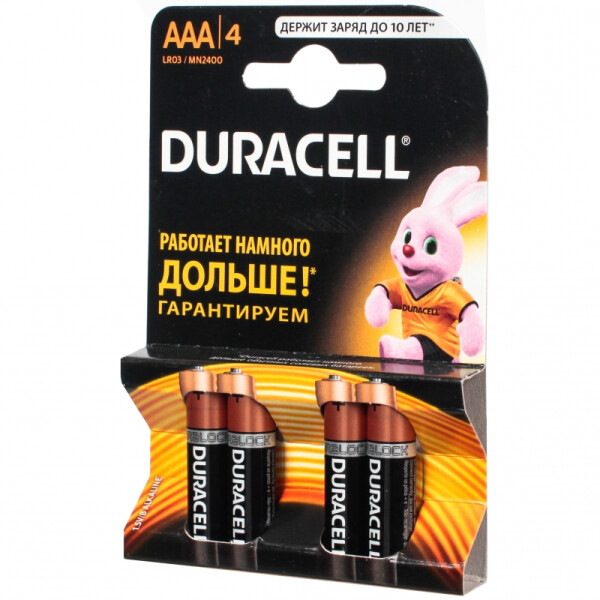 Батарейки Duracell Basic AAA− надежный источник питания для часто используемых устройств, таких как механизированные игрушки, фонарики, портативные игровые консоли, пульты дистанционного управления, CD-плееры и т. д., кроме того, благодаря особой технологии Duralock Power Preserve неиспользованные батарейки Duracell могут сохранять заряд вплоть до 10 лет.