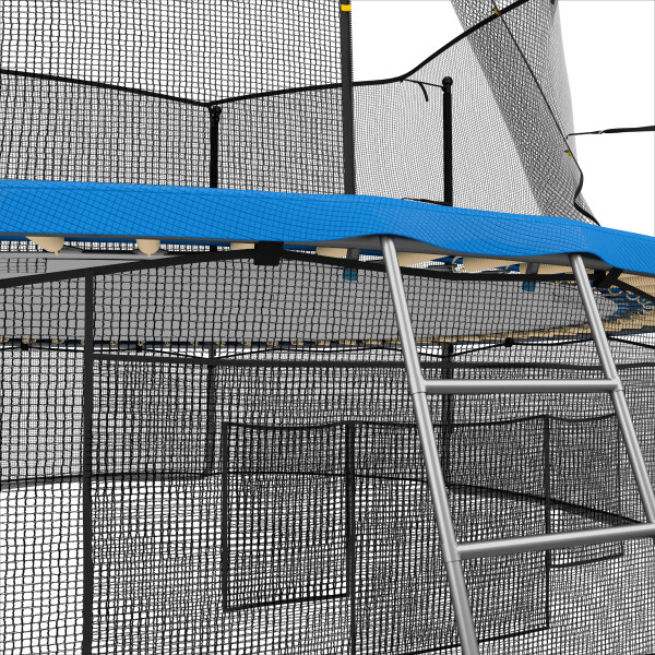 Помимо верхней защитной сетки, все батуты модельного ряда UNIX line оборудованы нижней защитной сеткой, которая препятствует проникновению под прыжковое полотно батута детей, животных, а так же попаданию посторонних предметов, и лестницей для удобства пользования.
