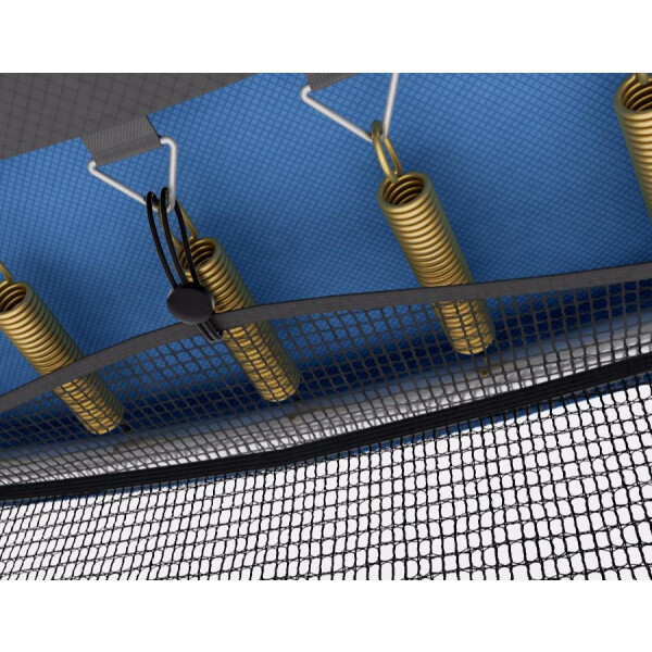Защитный мат для пружин, расположенный по периметру батута, состоит из четырех слоев, обшитых ПВХ материалом, плотностью 130 г/см3 и надежно закрывает пружины.