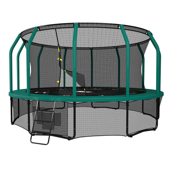 Батуты UNIX line премиальной серии SUPREME разработаны для ежедневного использования детьми и взрослыми, устойчивы к неблагоприятным погодным условиям и соответствуют международным стандартам качества ISO 9001. Металлический каркас батутов выполнен из особо прочной гальванизированной стали толщиной до 2 мм с использованием новейшей системы креплений деталей рамы батута «X-Conneсtor» (толщина стали 2.4 мм), что обеспечивает высокую надежность рамы и уровень безопасности пользователя, максимально допустимый вес которого, в зависимости от модели (размера), может достигать 180 кг. Прыжковое полотно премиальных батутов UNIX line SUPREME обладает повышенной износостойкостью благодаря высокой плотности волокон полипропилена (перматрон), из которых состоит само полотно. Защитный мат для пружин, расположенный по периметру батута, состоит из четырех слоев, обшитых ПВХ материалом, плотностью 150 г/см3 и надежно закрывает пружины. Помимо верхней защитной сетки, все батуты премиального модельного ряда UNIX line оборудованы нижней защитной сеткой, которая препятствует проникновению под прыжковое полотно батута детей, животных, а также попаданию посторонних предметов, и лестницей для удобства пользования. Так же в комплект входят специальные крепления батута к земле (колышки).
