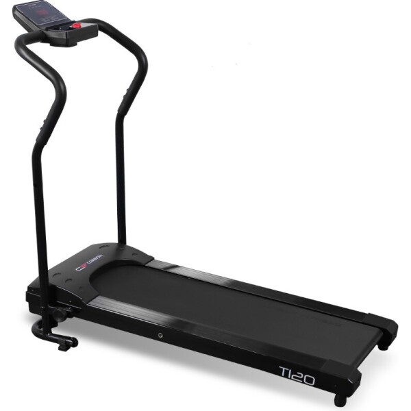 Начинкой T120 является мотор от американского производителя LEESON. Мощность двигателя всего 1.25 л.с., но тем не менее, это позволяет разгонять беговое полотно до 10 км/ч, что дает возможность не только ходить, но и заниматься бегом. Размер бегового полотна 100*32,5 см является оптимальным для комфортных занятий. Комфортная жесткость, которая не даст вашим суставам почувствовать недомогание. Конструкция рамы рассчитана на использование тренажера пользователями весом до 105 кг.