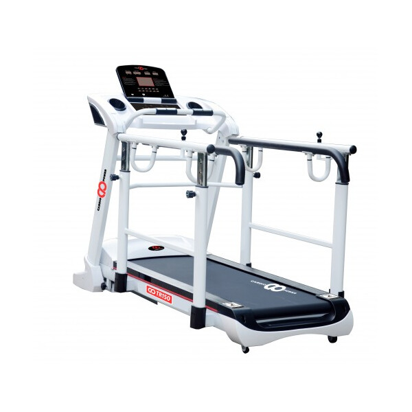 Беговая дорожка CardioPower TR150 разработана для тренировки пожилых людей и реабилитации пациентов с ограниченными возможностями. Модель имеет удлиненные двойные поручни с регулировкой по высоте и ширине и широкое беговое полотно 50 х145 см. для обеспечения полной безопасности и комфорта тренировки. Мотор переменного тока AC обеспечивает регулировку скорости в диапазоне от 0,2 км/ч до 14 км/ч с шагом изменения 0,1 км/ч. Информативный LED дисплей отображает все данные тренировки. Контроль пульса осуществляется с помощью контактных сенсоров и беспроводного считывания пульса с кардиопояса.