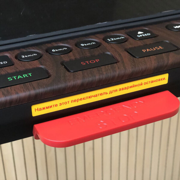 Дорожка имеет двукомпонентную амортизацию. Во-первых, на дорожке установлены четыре запатентованных эластомера квадратной формы по углам деки. Дополнительную амортизацию создает сама дека с направляющими из аллюминия, т.к. она не имеет точек крепления в средней части. Два дополнительных эластомера в средней части являются своеобразным демпфером на случай удара. При всей легкости конструкции система амортизации позволила полностью исключить любые вибрации консоли во время тренировки. На панели нет встроенных карманов для хранения бутылки с водой. Но вы можете совершенно спокойно поставить ее на гладкую поверхность консоли и пользоваться во время занятий.