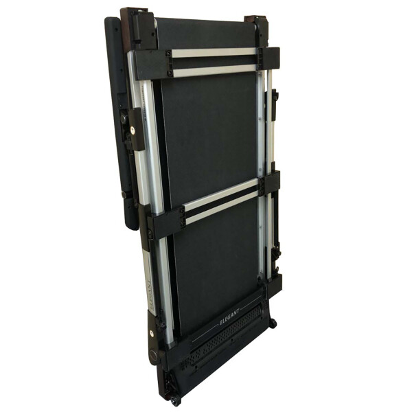 Четыре гидроцилиндра позволяют быстро и без усилия привести дорожку в рабочее положение или сложить после тренировки. В сложенном виде дорожка имеет толщину всего 13,5 см. Тренажер можно хранить на полу под кроватью или диваном, и в вертикальном положении, например в кладовой. Переместить дорожку после занятий не составит особого труда. Четыре разнонаправленных роликов позволяют перемещать ее вперед - назад, или влево - вправо, что очень удобно в пределах ограниченного пространства.