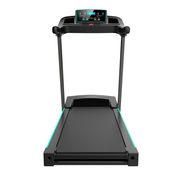 Консоль беговой дорожки оснащена LCD-дисплеем с голубой подсветкой, отображает всю необходимую пользователю информацию во время тренировки: скорость, время, дистанция, сжигаемые калории, пульс. Встроенные в поручни датчики позволят контролировать пульс во время тренировки. Занятия на любом тренажере являются достаточно монотонным занятием. Планшет или смартфон, установленный на держатель, помогут не заскучать во время тренировки, послушать музыку в наушниках или посмотреть фильм.