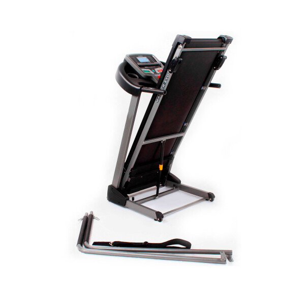 После завершения тренировки, сняв поручни, вы можете сложить беговую дорожку и переместить его с помощью двух удобных колес.