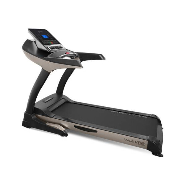 Серия WIDER от OXYGEN FITNESS ориентирована на пользователей, максимально требовательных к комфорту. В частности, серия отличается шириной бегового полотна - для Wider T35 ширина составляет 56 см. Такие размеры являются максимальными в классе домашних беговых дорожек. По сути, ровно такие же характеристики используются в дорожках, установленных в клубах. По остальным биомеханическим характеристикам Wider T35 относится к высшему классу домашних беговых дорожек. Мощный двигатель японской Fuji Electric 3.75 л.с. разгоняет беговое полотно до 20 км./ч., угол наклона составляет внушительные 20%. В основе конструкции - особопрочная рама. Благодаря этому дорожка отлично подойдет для тяжеловесов, максимальный вес пользователя составляет 160 кг. Высокопрочное многослойное полимерное полотно сложного плетения Habasit NVT-256 толщиной 2,4 мм. относится к классу коммерческих и рассчитано на напряженную многолетнюю эксплуатацию. Гордость Wider T35 - новейшая амортизационная система proRUN закрытого типа. Она состоит из 4 профессиональных динамических эластомеров VCS, расположенных по краям деки, и специального блока proRUN в центральной части деки. Такая связка позволяет настроить дорожку на оптимальный средний уровень мягкости и обеспечить беспроблемную эксплуатацию на многие годы.
