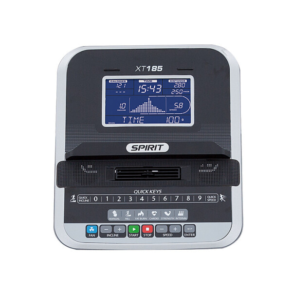 Модель SPIRIT ХТ185 является начальной версией беговых дорожек серии ХТ. Надежная беговая дорожка SPIRIT XT185 обладает меньшим набором функций и программ, чем последующие модели данной серии, что в свою очередь, удовлетворяет пользователя с минимальными требованиями к тренировке. При включении тренажера достаточно просто нажать кнопку СТАРТ и тренировка начнется.