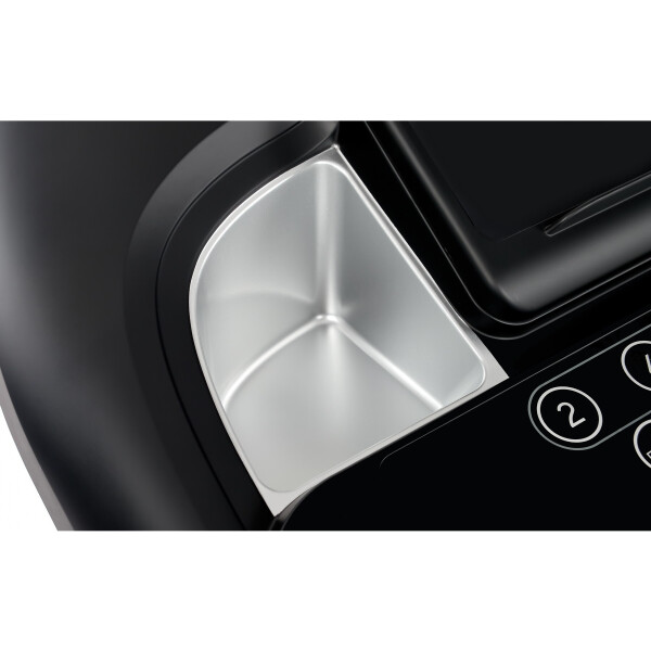 Тренировочный компьютер представлен голубым многофункциональным дисплеем диагональю 5 дюймов (12,7 см). На экран одновременно выводятся все основные параметры тренировки - время, скорость, дистанция, потраченные калории и пульс. В программный пакет входят 12 предустановленных программ, направленных на тренировку скоростных качеств, выносливости, укрепления сердечно-сосудистой системы и похудания. Помимо предустановленных программ, можно воспользоваться самостоятельно регулируемым ручным управлением или создать собственную программу в одном из 3-х пользовательских режимов. Здесь также есть 3 пульсозависимых режима. Для считывания показаний пульса в поручни дорожки вмонтированы контактные сенсорные датчики. Благодаря быстрым клавишам управления можно отрегулировать скорость либо угол наклона, не снимая рук с поручней. Разнообразить тренировку поможет мультимедийная составляющая - в консоль дорожки установлены колонки мощностью 3 ватта, а носителями аудио файлов выступают MP3-плеер или смартфон. К другим особенностям дорожки относятся двухфазная гидравлическая система складывания easy-DROP, которая существенно облегчает складывание дорожки, а при раскладывании обеспечивает медленное опускание полотна в последней фазе, гарантируя легкость и безопасность. Перемещение дорожки происходит за счет 2-х транспортировочных роликов.