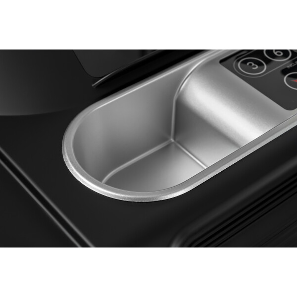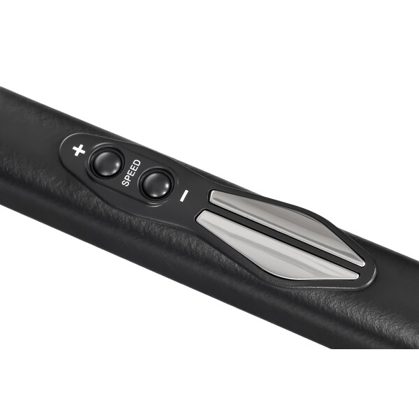 Тренировочный компьютер представлен голубым многофункциональным дисплеем диагональю 5 дюймов (12,7 см). На экран одновременно выводятся все основные параметры тренировки - время, скорость, дистанция, потраченные калории, угол наклона и пульс. В программный пакет входят 12 предустановленных программ, направленных на тренировку скоростных качеств, выносливости, укрепления сердечно-сосудистой системы и похудания. Помимо предустановленных программ, можно воспользоваться самостоятельно регулируемым ручным управлением или создать собственную программу в одном из 3-х пользовательских режимов. Здесь также есть 3 пульсозависимых режима. Для считывания показаний пульса в поручни дорожки вмонтированы контактные сенсорные датчики. Благодаря быстрым клавишам управления можно отрегулировать скорость либо угол наклона, не снимая рук с поручней. Разнообразить тренировку поможет мультимедийная составляющая - в консоль дорожки установлены колонки мощностью 3 ватта, а носителями аудио файлов выступают MP3-плеер или смартфон. К другим особенностям дорожки относятся двухфазная гидравлическая система складывания easy-DROP, которая существенно облегчает складывание дорожки, а при раскладывании обеспечивает медленное опускание полотна в последней фазе, гарантируя легкость и безопасность. Перемещение дорожки происходит за счет 2-х транспортировочных роликов.