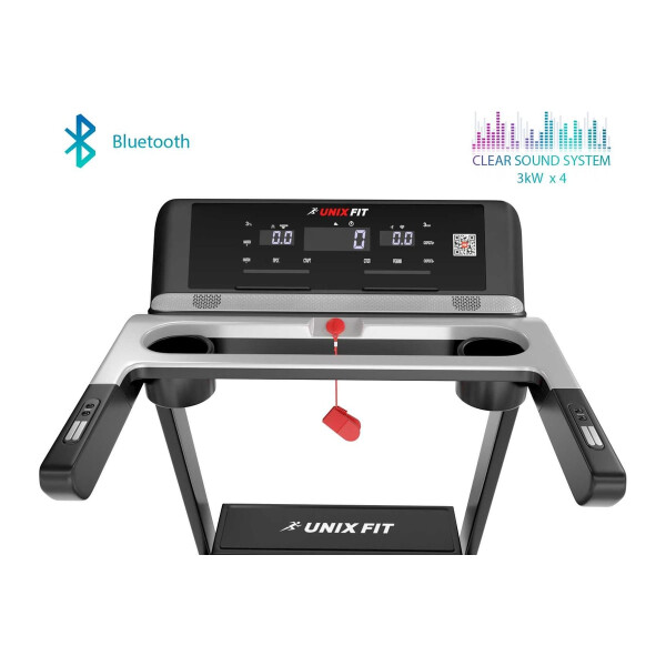 Для того, чтобы тренировка прошла легко, с помощью Bluetooth можно подключить ваш смартфон или планшет и прослушивать любимые треки или подкасты прямо во время занятий. Кроме того, у дорожки есть специальная подставка для вашего девайса. Бутылочку с водой удобно расположить в одном из двух карманов по краям консоли.