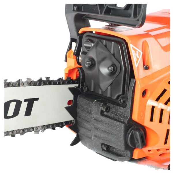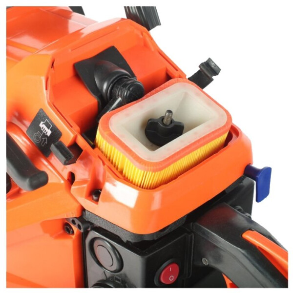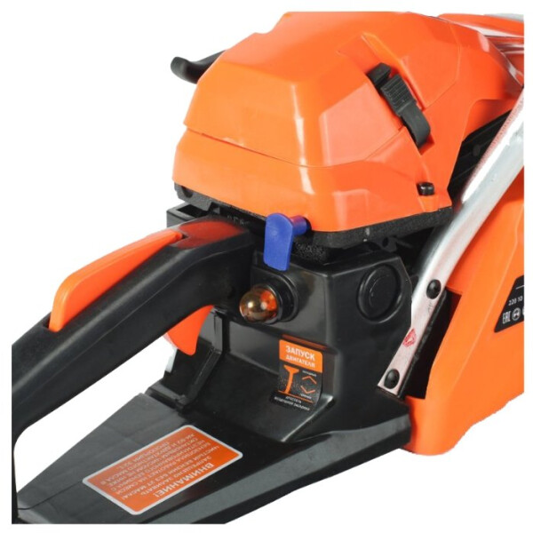 Передовая система антивибрации, сбалансированная конструкция и эргономичная рукоятка обеспечивают комфорт и удобство при продолжительной работе. Пила оснащена автоматической системой смазки цепи с регулировкой количества подаваемого масла, в зависимости от условий работы и типа древесины. Для безопасной работы пила оснащена уловителем цепи, тормозом цепи, предохранителем клавиши старта и щитком для защиты рук. Легкий доступ к воздушному фильтру и свече зажигания позволяют самостоятельно проводить техническое обслуживание. Для снижения уровня шума предусмотрен глушитель. В комплекте емкость для смешивания топливной смеси и напильник для заточки цепи.