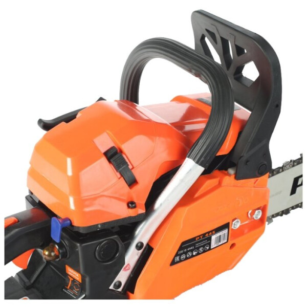 PT 445 - простая в обслуживании бензопила с надежным 2т двигателем и металлическим упором. Незаменима при распиловке дров среднего диаметра и работе в саду.