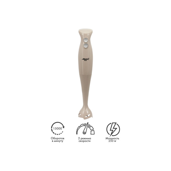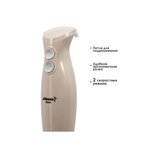 Погружной блендер Atlanta ATH-3144 beige позволяет быстро и качественно: измельчить орехи, травы, сыр, приготовить горячее пюре прямо в кастрюле (50 С), смешать коктейль или детское питание.