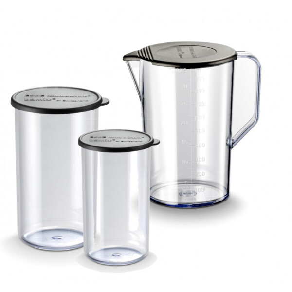 - 2 стакана с крышкой 400 мл и 600 мл, кувшин с крышкой 1000 мл. Емкости изготовлены из высококачественного материала ТРИТАН - легкого, небьющегося, ударопрочного, термостойкого (до 110 C). Можно использовать в посудомоечной машине, в морозильной камере и микроволновой печи. Отлично подходят для работы с блендером. Комплектуются удобной крышкой, которая герметично закрывается.