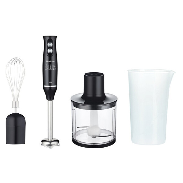 Блендер BlacktonHB732SS (макс. мощность 700 Вт, 2 скорости, объем мерного стакана 700 мл, объем чаши измельчителя 500 мл, импульсный режим работы, материал погружной части - нержавеющая сталь, материал лезвия - нержавеющая сталь, напряжение/частота тока - 220-240В, 50Гц, насадка-венчик, насадка-блендер, мерный стакан, чаша измельчителя с крышкой).
