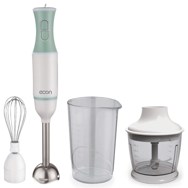 Представляем Вам простой, но надежный погружной блендер ECO-432HB мощностью 700 Вт. В качестве доступных функций доступны два варианта скорости, а так же импульсный режим. Ножи и насадка сделаны из нержавеющей стали. В комплекте с блендером Вы так же найдете мини-измельчитель объемом 500 мл, и мерный стаканчик объемом 500 мл. Отличный помощник на кухне!
