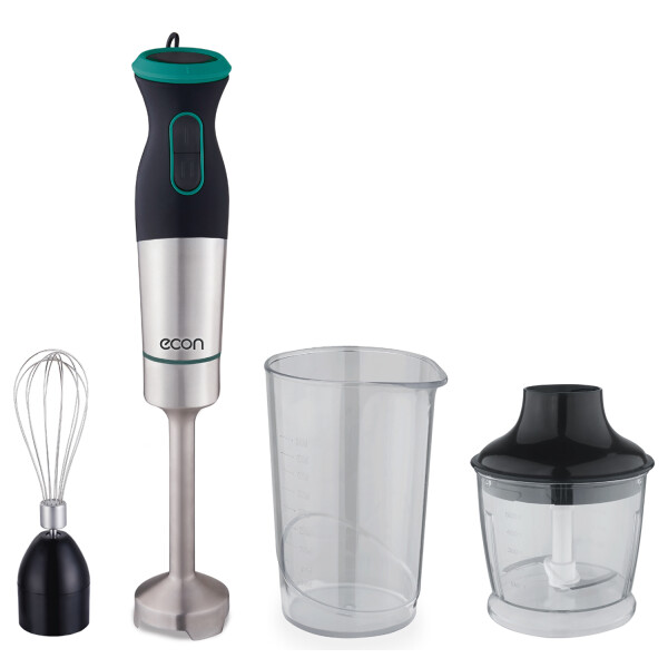 Представляем Вам простой, но надежный погружной блендер Econ ECO-434HB мощностью 1000 Вт. В качестве доступных функций доступны два варианта скорости, а так же импульсный режим. Ножи и насадка сделаны из нержавеющей стали. В комплекте с блендером Вы так же найдете мини-измельчитель объемом 500 мл, и мерный стаканчик объемом 500 мл. Отличный помощник на кухне!
