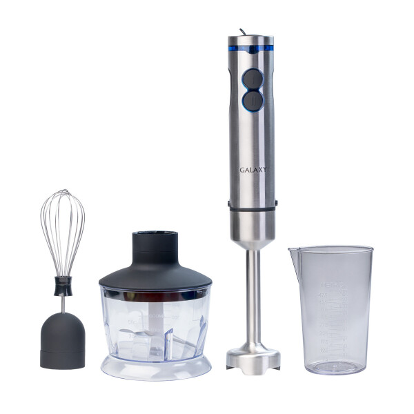 Очевидным преимуществом блендерного набора GALAXY является четырехлопастной нож, который быстро и равномерно рубит весь объем продуктов и сверху, и снизу. Нож выполнен из специальной нержавеющей стали марки 18/10, которая устойчива к коррозии и воздействию солей даже при нагревании, препятствует размножению микробов. Стоит также отметить плавную регулировку скорости в наборе GL2128. Вы сможете самостоятельно регулировать скорость в зависимости от рецепта и плотности продуктов. Дополнительный комфорт в работе обеспечивает прорезиненная поверхность насадки-измельчителя и насадки-венчика.