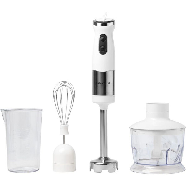 Блендерный набор GALAXY LINE GL2121 предназначен для взбивания, измельчения и смешивания ингредиентов. Набор включает несколько насадок и предметов: измельчитель (чоппер), погружной блендер, венчик, мерный стакан. Насадка-измельчитель с пластиковой чашей объемом 0,5 литра позволит Вам быстро измельчить овощи для салата или супа, превратить мясо или рыбу в фарш, приготовить паштет и многое другое. Погружной блендер из высококачественной нержавеющей стали имеет четырехлопастный нож, который долго держит заточку и быстро измельчает даже горячие и твердые продукты. Плавная регулировка скорости обеспечивает качественное измельчение, взбивание и смешивание ингредиентов различной плотности, а режим TURBO не оставляет шанса ни одному комочку. В наборе также присутствует насадка-венчик, с помощью которой Вы легко и быстро сможете взбить сливки, яйца, приготовить крем и жидкое тесто. Мерный стакан объемом 0,5 литра удобен как для измерения объема жидкостей и сыпучих продуктов, так и для взбивания в нем кремов, муссов, соусов, жидкого теста и др. Высокую производительность и долгий срок службы блендерного набора GALAXY LINE обеспечивает номинальная мощность 800 Вт и профессиональный DC мотор с низким уровнем шума. GL2121 имеет эргономичный корпус и выполнен из экологически безопасного пищевого пластика. В комплекте с набором идет книга рецептов, с помощью которой Вы откроете для себя новые блюда и потрясающие рецепты.