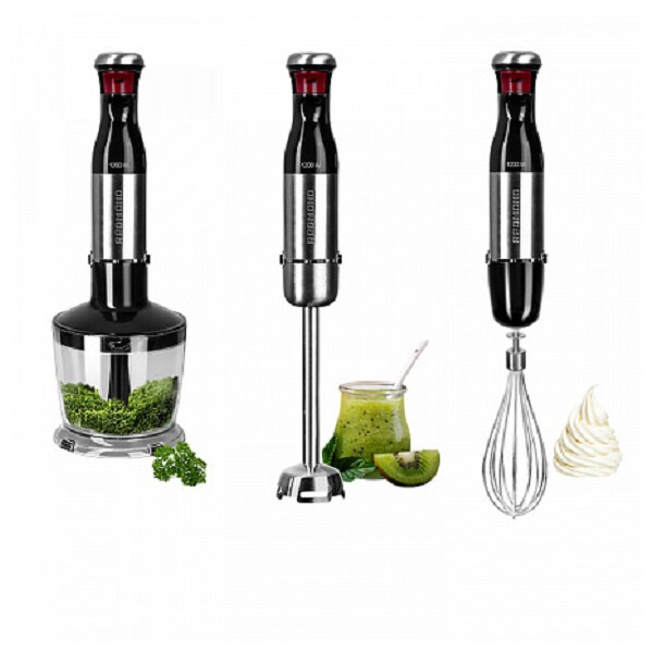 REDMOND RНВ-2980– многофункциональный блендер «3 в 1» с тремя сменными насадками и возможностями погружного блендера, миксера и измельчителя. Благодаря высокой максимальной мощности 1200Вт прибор быстро и качественно обрабатывает как жидкие, так и твердые продукты.