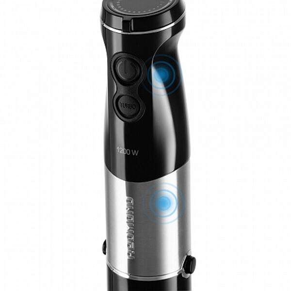 В блендере предусмотрено два режима работы: основной до 14 000 об/мин и турборежим 15 700 об/мин. В основном режиме мощный блендер справится практически со всеми кулинарными задачами. Для наиболее тщательной обработки продуктов в этом режиме увеличивайте скорость вращения ножей и насадок постепенно. Сделать это можно с помощью регулятора на ручке моторного блока. Турборежим пригодится для особенно сложных задач измельчения твердых продуктов, например, орехов.