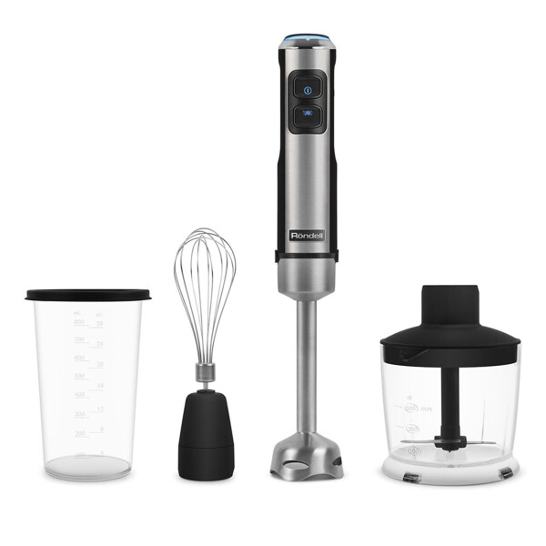 Блендерный набор RDE-1300 с максимальной мощностью 1200 Вт поможет вам легко и быстро воплощать в жизнь самые затейливые кулинарные фантазии. Погружная часть и рабочие лезвия прибора выполнены из высококачественной нержавеющей стали, что гарантирует ему длительный срок безупречной службы. Блендер оснащен современным DC-мотором с низким уровнем шума, поэтому вы сможете включать прибор в утренние или вечерние часы. Особому комфорту в использовании устройства способствует световой индикатор работы в виде LED-подсветки. Специальный регулятор плавно переключает скорости блендера. В устройстве также предусмотрен режим TURBO для самых твердых и плотных ингредиентов. Благодаря венчику, входящему в комплектацию блендера, вы можете не только измельчать, но и взбивать. В набор также входят рабочая чаша объемом 650 мл и стакан для смешивания объемом 800 мл. Пользоваться прибором очень удобно: ручка блендера имеет особое покрытие, благодаря которому он не будет скользить в процессе использования. Купите блендерный набор RDE-1300 и занимайтесь кулинарным творчеством каждый день.