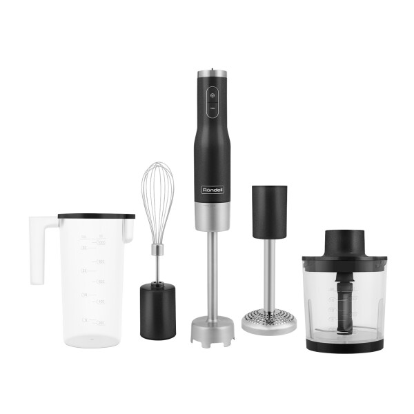 Блендерный набор RDE-1302 с максимальной мощностью 1200 Вт позволит вам готовить с удовольствием и добиваться впечатляющих кулинарных результатов. Благодаря DC-мотору прибор работает так тихо, что им можно пользоваться даже в утренние и вечерние часы. Рабочие лезвия с титановым покрытием и погружная часть блендера изготовлены из надежной нержавеющей стали, что гарантирует безупречную работу устройства на долгие годы. Прибор способен не только измельчать ингредиенты, но и взбивать кремы, муссы или коктейли для этого в комплекте имеется специальная насадка-венчик. А благодаря дополнительной насадке, изготовленной из нержавеющей стали, блендер может делать нежнейшее пюре. В устройстве также предусмотрен режим TURBO для самых твердых или плотных продуктов. Скорости переключаются плавно благодаря специальному регулятору. В набор входят рабочая чаша объемом 500 мл и стакан для смешивания объемом 1000 мл с крышкой. Корпус прибора имеет противоскользящее покрытие для комфортного использования. Купите блендерный набор RDE-1302 и получайте удовольствие от процесса кулинарного творчества!