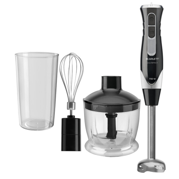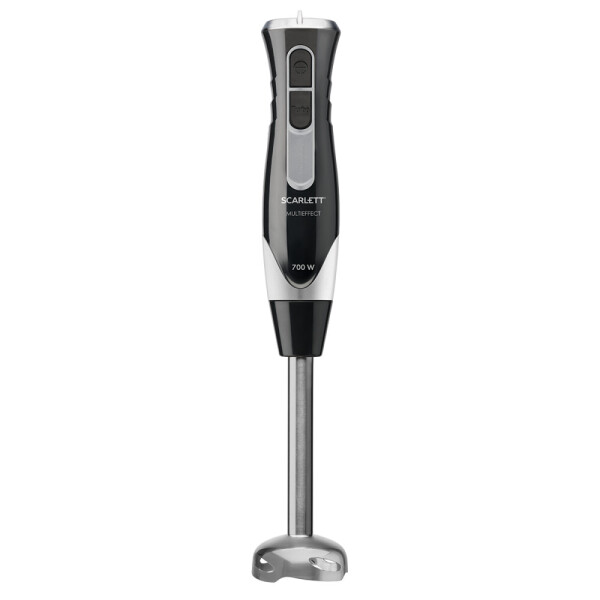 Погружной блендер Scarlett SC-HB42F56 может заменить сразу несколько кухонных приборов. Венчик взобьет сливки, яичные белки, замешает лёгкое тесто для блинчиков. Измельчитель объемом 600 мл быстро переработает овощи в овощную зажарку, измельчит мясо или орехи. Погружная насадка сделает однородное и нежное пюре для детского питания, супов, соусов. 20 скоростных режимов позволят подобрать оптимальный для мягких и твёрдых ингредиентов, а с особенно сложными продуктами справится режим Turbo. Благодаря мощности 700 Вт самые трудоёмкие задачи будут решены за считаные секунды. Поворотный переключатель удобно расположен на рукоятке, так что вы сможете регулировать процесс одной рукой, не прерываясь. Нога блендера оснащена ножом MULTIEFFECT с двумя укороченными лезвиями для увеличения режущей силы. Рукоятка блендера имеет эргономичную форму, благодаря которой Ваша рука не устанет даже при длительном использовании.