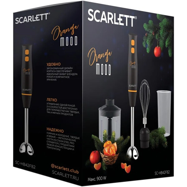 Блендер Scarlett SC-HB42F82 способен заменить сразу несколько кухонных приборов. Сливки, яичные белки взобьёт венчик, он же поможет в замешивании лёгкого теста, например, для блинчиков. Измельчитель (500 мл) быстро подготовит овощную поджарку для супа, мясо для запеканки или порубит орехи. Погружная насадка сделает пюре, такое однородное и нежное, что его можно будет использовать даже для детского питания. Также комплектация блендера дополнена мерным стаканом, который облегчит процесс приготовления. В особенно сложных случаях поможет режим Турбо. Благодаря мощности 900 Вт самые трудоёмкие задачи будут решены за считанные секунды. Венчик, мини-измельчитель и погружную насадку можно мыть в посудомоечной машине.