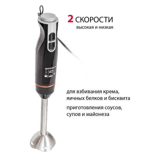 Supra HBS-794 простой и надёжный в эксплуатации стационарный блендер, который ускорит и облегчит множество кулинарных задач. Смешивайте ингредиенты молочных коктейлей, жидкого теста, крем-супов, пюре и соусов до максимально однородного состояния в считанные мгновения.