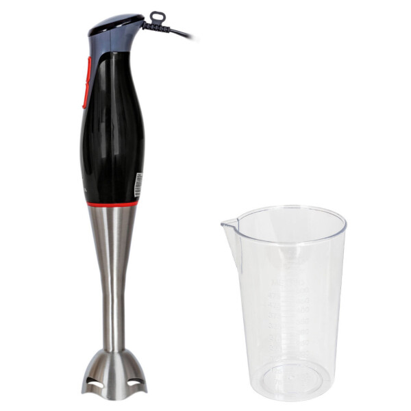 Блендер погружной SUPRA оснащен мощностью 750 Вт. В комплект входит съемная насадка-венчик, мини-измельчитель 750 мл, мерный стакан для взбивания 650 мл.